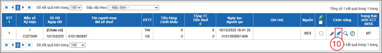 (10) để Ký và phát hành Hóa đơn.