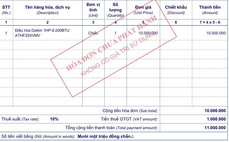- Thành tiền: 10.000.000đ
