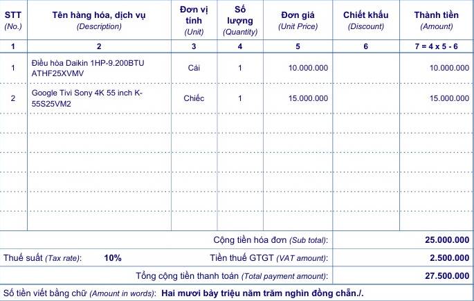 - Thuế suất VAT: 10%