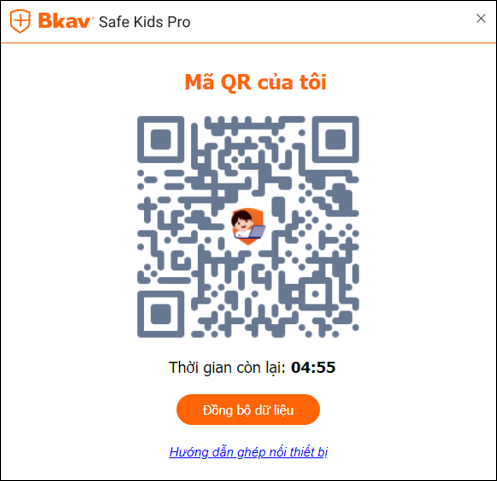 Bạn mở phần mềm Bkav Safe Kids trên máy tính. Chọn biểu tượng mã QR