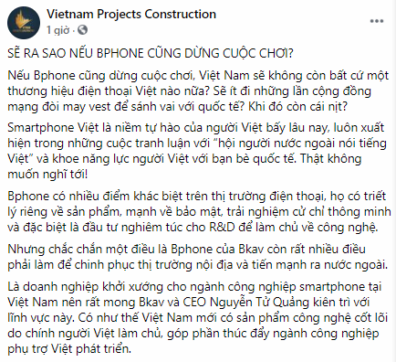 Ngày 9/5/2021, VinSmart chính thức công bố sẽ dừng sản xuất điện thoại thông minh Vsmart. Nhân sự kiện này, page Vietnam Projects Construction có bài chia sẻ: